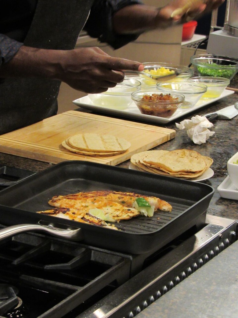 Grilled tilapia and a stunning salsa wrapped in a warm tortilla rounded out the tasting for Samuelsson's demo.