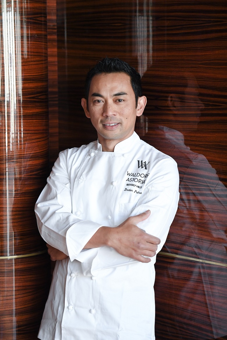 The Waldorf Astoria Beverly Hills' chef de cuisine, Richard Archuleta, is another veteran of the Joël Robuchon family of restaurants in Las Vegas. The SoCal native most recently served as senior sous chef at the three-Michelin-starred Joël Robuchon at the MGM Grand Las Vegas. Before that, he worked with Vongerichten for six years as the executive sous chef at Jean-Georges Steakhouse at Aria Resort and Casino, also in Las Vegas.