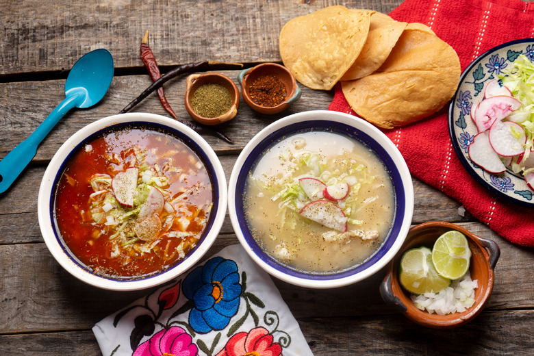 Pozole is a soup made from hominy and meat — usually pork or chicken — in a mild guajillo and ancho chili broth. Making this dish is a labor of love, but it's worth it.