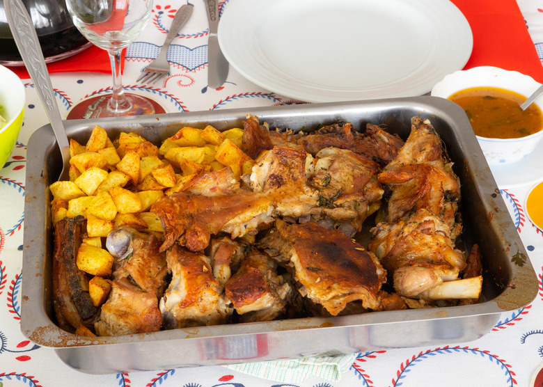 Cabrito is the meat of a kid goat three weeks old or younger. Different cooking methods include spit-roasted, oven-roasted, blood-braised with offal and seasonings, and tomato-braised with garlic, onions and chilis.
