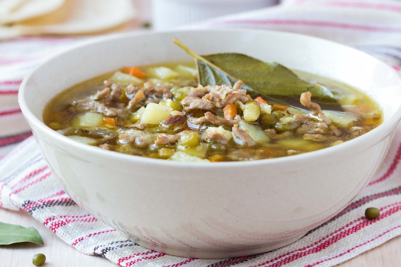 Menudo is a popular Mexican soup made with beef tripe, or cow stomach. The classic recipe features red chili pepper broth with onions, lime and hominy, and is frequently served after wedding receptions in the southern U.S. and Mexico.