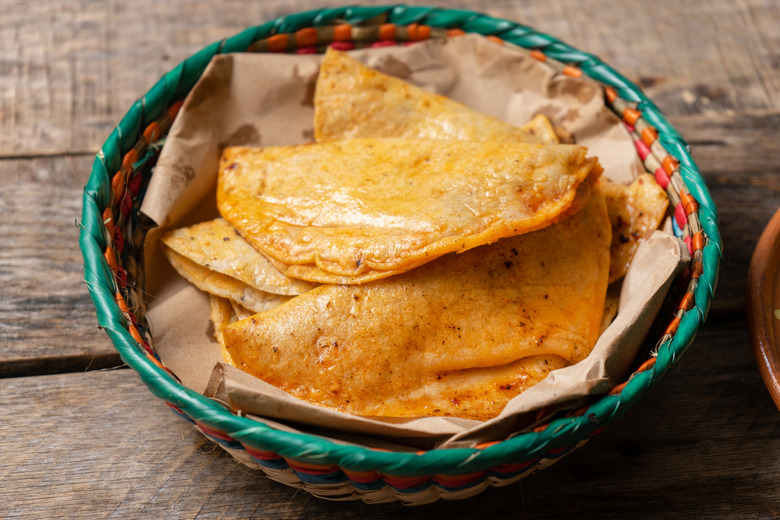 Tacos de canasta, or "basket tacos," are also known as tacos sudados, or "sweaty tacos" because they're steamed and served in a basket. Fillings range from chorizo and mashed potatoes to refried beans, barbacoa and more. Serve with salsa and, if you dare, a drop of the world's hottest hot sauces.