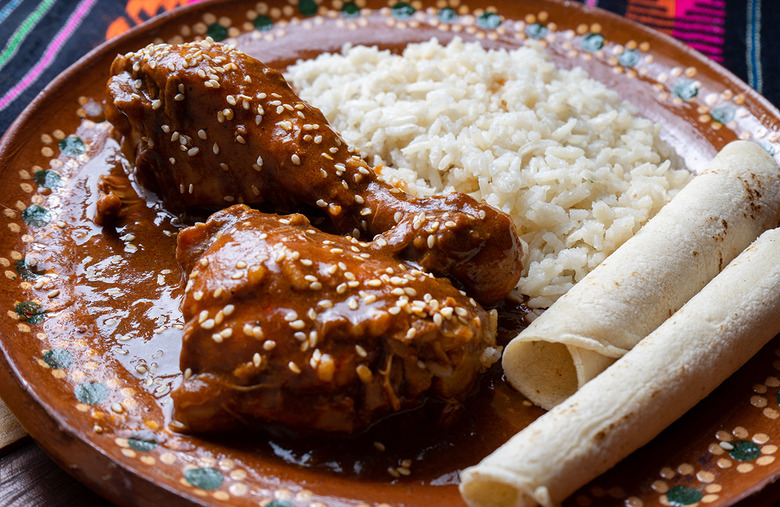Mole is a thick, spicy sauce that is usually served with chicken, turkey, pork and other kinds of meats. This sauce is made with chili peppers you may find in some of the world's spiciest hot sauces, chocolate and other condiments mixed together. The word derives from "molli," which means sauce in the spoken language of the Aztecs. Many people associate this sauce with Puebla, Mexico, but each state in Mexico has its own version. There are multiple stories about how this spicy sauce came to be. One legend is that in the 17th century, a nun threw together all the ingredients she had on hand when she had an unexpected visit from the Archbishop of Puebla and the Viceroy of New Spain.