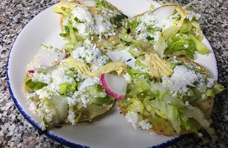 Chalupas are a popular snack food in Mexico. Though you may find different variations of the chalupa all over the country, the traditional chalupa can be found in the city of Cholula in Puebla, Mexico. Unlike the ones found at the famous fast food restaurant Taco Bell that more closely resemble tacos, the Mexican chalupa is a small thick pie of corn dough in the shape of a little boat. It's then loaded with salsa, shredded lettuce, crumbled cheese and sometimes meat.