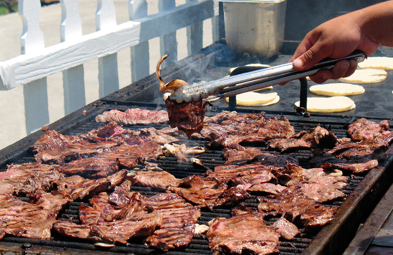 Carne asada can be best described as thinly sliced beef seasoned with salt, pepper, garlic salt and other spices and then grilled over an open barbeque. But it wasn't until Spanish explorers introduced domesticated animals such as pigs and cows to Central America that this dish came into being. By 1526, Mexico City had a regular supply of beef, which led to the creation of dishes such as carne asada tacos. Carne asada also makes a tasty addition to your eggs.