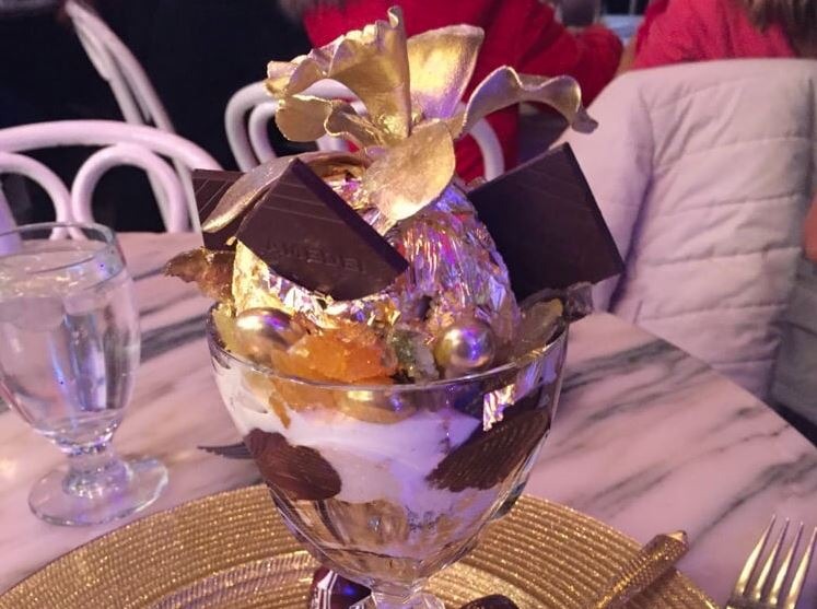 Perhaps America's most famous super-expensive dish, Serendipity 3's Golden Opulence Sundae was introduced to celebrate the New York City restaurant's 50th anniversary in 2005, and at $1,000 it's listed by Guinness as the world's most expensive sundae. What's on it? Three scoops of Tahitian vanilla bean ice cream infused with Madagascar vanilla and covered in 23-karat gold leaf; chocolate syrup made with Amedei Porcelana, one of the world's most expensive chocolates; chunks of rare Venezuelan Chuao chocolate; candied fruits from Paris; gold-covered almonds; chocolate truffles; marzipan cherries; a small bowl of unsalted caviar infused with passion fruit, orange, and Armagnac; and a whole lot of edible gold leaf.