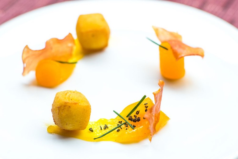 Arguably the most famous dish at Grant Achatz's Chicago restaurant Alinea, Hot Potato Cold Potato toys with the senses by pairing hot with cold, once again turning familiar flavors on their head. Hot soup is poured into a small custom-made paraffin bowl, which allows a pin containing a cold truffle-topped ball of potato and a cube of Parmesan cheese to hover over it, pierced by a pin going through the wax bowl. When the pin is removed, the cold potato drops into the hot potato, creating a sensory experience that will blow you away.