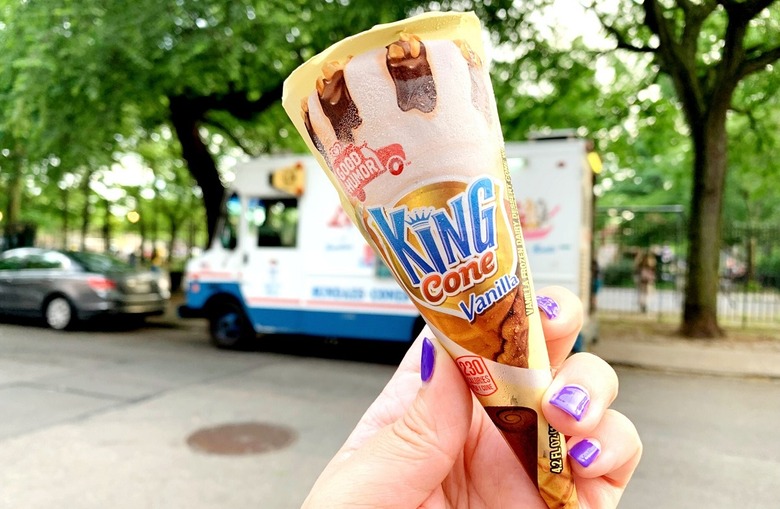 If you're partial to having ice cream in a cone, then ordering a King Cone — like the folks from New Hampshire — is the way to go. Vanilla ice cream is swirled into a sugar cone and topped with a chocolate coating and peanuts.