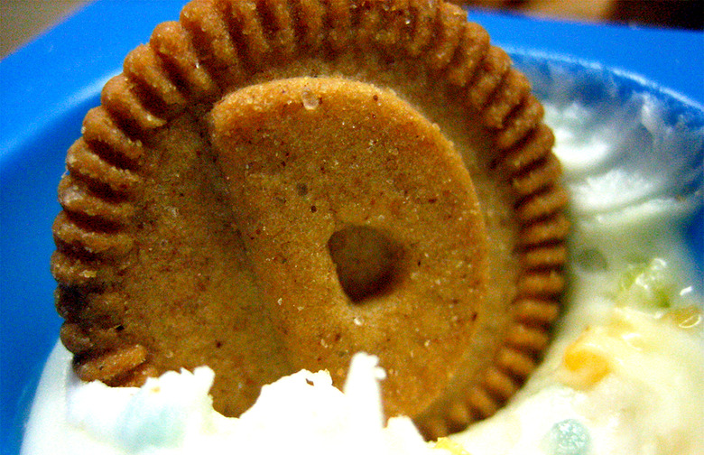 The '90s were a fascinating decade for snacks, as anyone who grew up during the decade can tell you. There were tons of new snacks, but some of the standouts include Doritos 3D, Bubble Jug gum, Shark Bites, PB Crisps, Dunkaroos (1990), Gushers (1991), Pizzarias Pizza Chips, Crispy M&Ms, Butterfinger BB's (1992), Push Pops, Fruit By the Foot (1991); Go-Gurt (1999); and Milk 'n' Cereal Bars. Two of the decade's most infamous processed snacks were Snackwells, which were released in 1993 to capitalize on the low-fat craze; and potato chips (like Lay's WOW! and fat-free Pringles) made with Olean, an oil substitute that ended up giving consumers serious digestive issues.