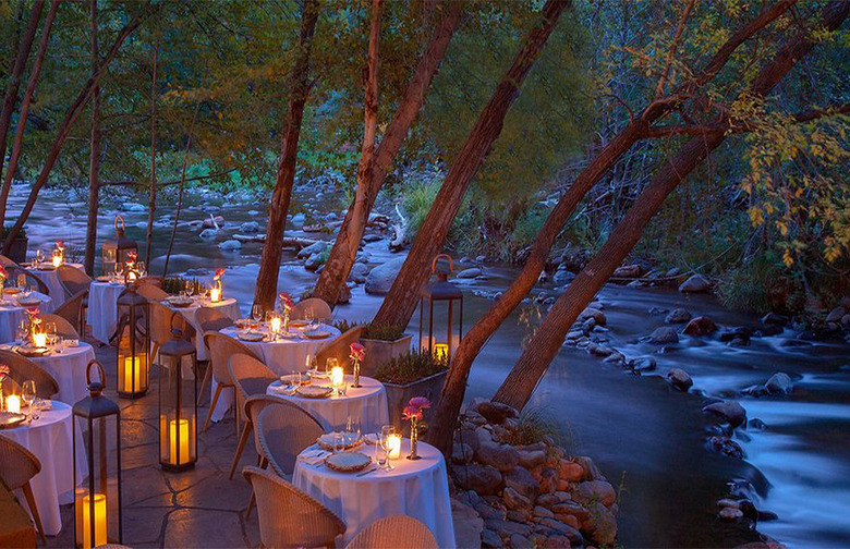 A candlelit meal alongside a babbling creek lined with cottonwood and sycamore trees is the stuff of storybooks, but this romantic dream can become a reality for you at Cress on Oak Creek. Located in the upscale L'Auberge de Sedona hotel in Arizona, this restaurant offers interior seating, but you'll want to snag an outdoor table overlooking the creek. Menu items feature fresh, seasonal ingredients. It offers an à la carte menu as well as a three-course tasting menu and also crafts menus for special occasions like Valentine's Day, when diners can choose from items such as poached sea bass with pickled mushrooms and beets or stuffed quail with fried dates.