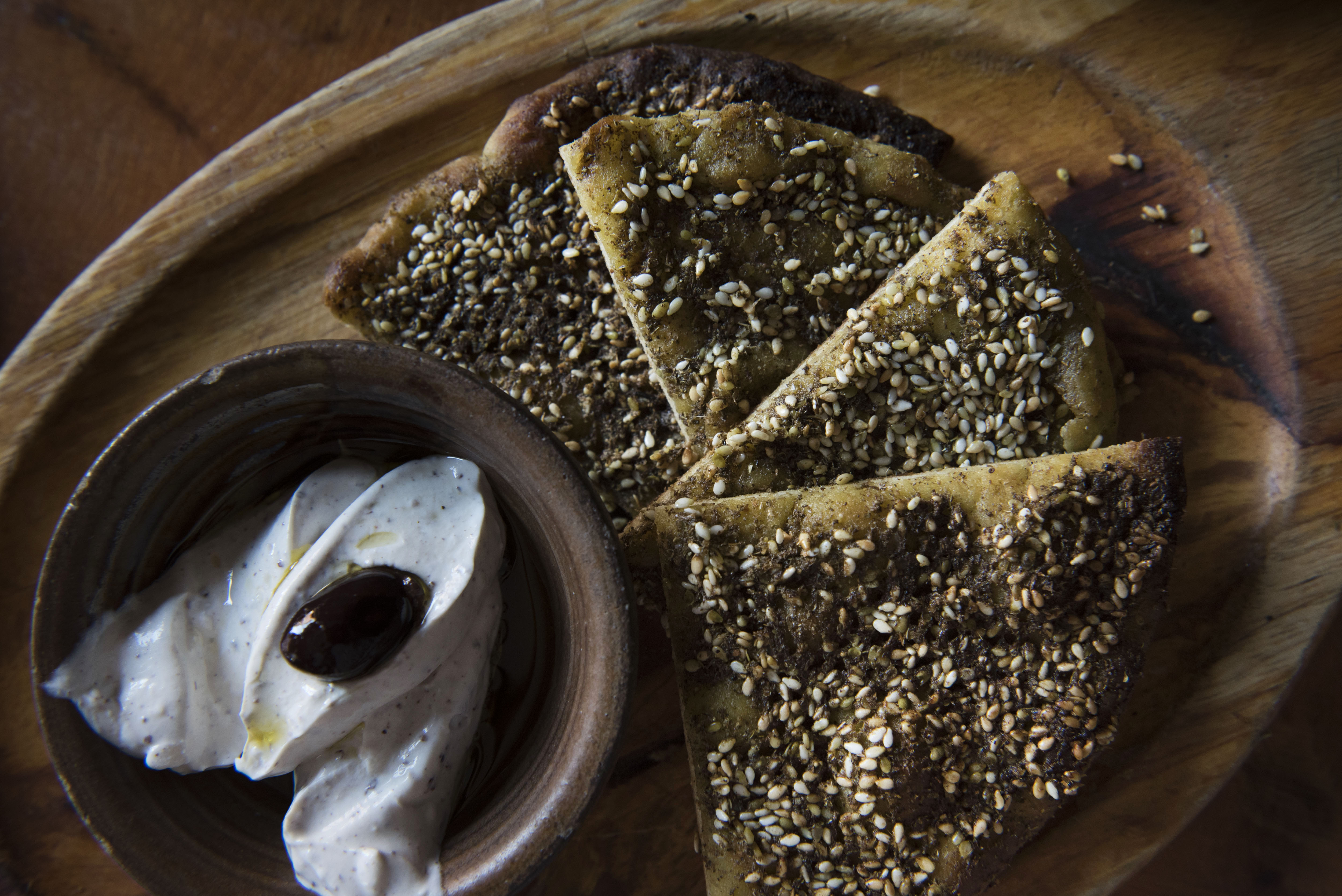 Baked flatbreads, or Manae'esh, come with toppings from the classic, Za'atar to Kafte W Jebne Bi Ajin, a style found most commonly among street vendors in Beirut, topped with minced meat (beef and lamb), spices, onions, and topped with melted cheese.