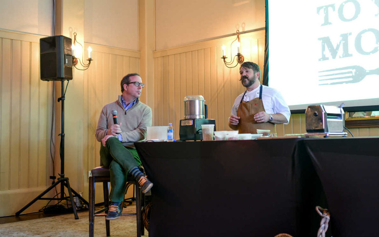 Southern Foodways Alliance director John T. Edge works with The Inn at Palmetto Bluff to curate poignant discussions with some of the event's featured Southern chefs, like Tyler Brown from Capitol Grille in Nashville (pictured here). Together the pair banter back and forth as they share stories on their culinary careers and styles while teaching the audience about certain foodways and serving them a taste to enjoy during the demo.