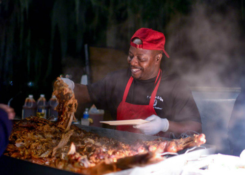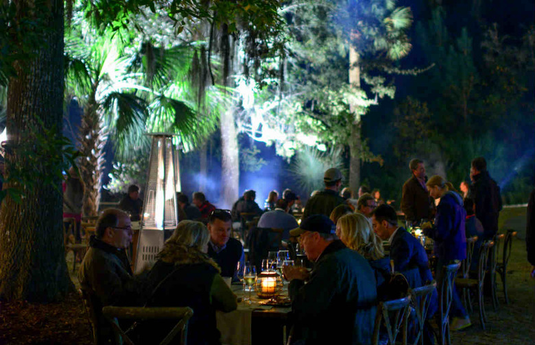 Tickets are hard to come by, security is fierce (so don't even try to sneak in), and the only way to arrive is by trolley, but the finale event — an Oyster Roast at Moreland — is always a spectacular night. After walking through some woods, you arrive to a part of the property that feels more like an upscale, private retreat. There are a few hut-like structures housing either bars or bands, and in between is a variety of seating and stations filled with any kind of Southern-style food you can imagine; seafood, fried chicken, brisket, and Low Country boil.