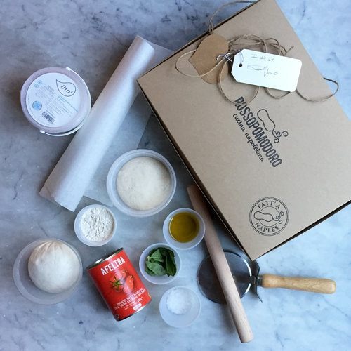 The box arrived with two individual containers of the restaurant's fresh pizza dough, a ball of high-quality buffalo mozzarella, a can of San Marzano tomatoes, parchment paper, flour for dusting your work surface, sea salt for the tomato sauce, a rolling pin, a pizza cutting wheel, fresh basil and extra virgin olive oil for topping the pizza, and an instruction guide.