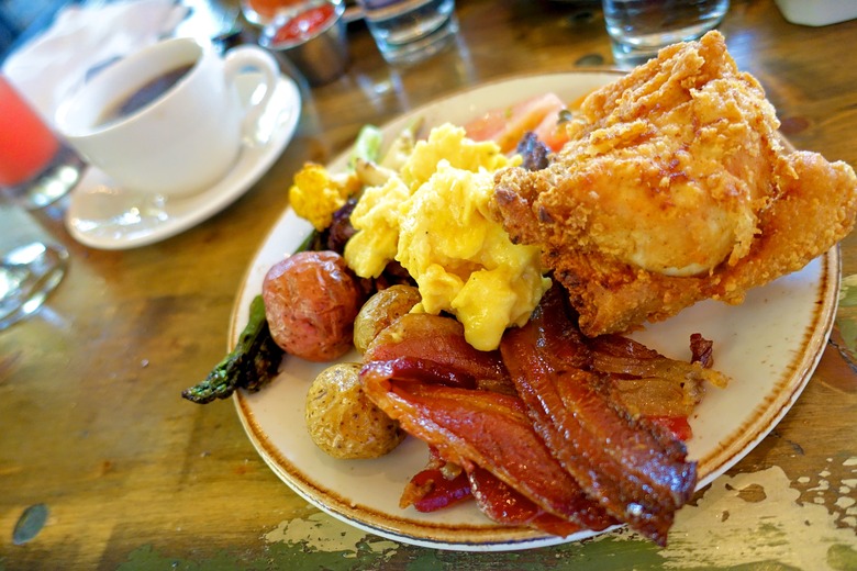 For me though, the space is best enjoyed with one of the best brunches you'll find in New York City. For $38 per person, you can dine on an all-you-can-eat brunch, with two hours of assorted salads, organic smoked salmon, apple-smoked bacon, and a manned carver station. Vegetarian options are also available: organic eggs and grilled and roasted vegetables, as well as yogurt, fruit, and homemade granola. And if you're craving something sweet, feast on never-ending French pastries, freshly baked muffins, or hot waffles. Under the warm summer sunshine, with a live band performing, it's the ultimate way to celebrate the weekend. This truly charming venue perfectly matches all that's great about brunch. Arrive with a large appetite — you'll need to make a lot of room for a true banquet of great food and drinks, including the classic mimosa and Bloody Marys along with signature cocktails like the Gallow Green, made with butterfly-pea-flower-infused vodka, Lillet Blanc, and fresh lemon.
