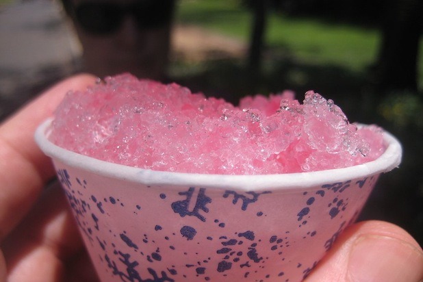Asian variations of snow cones have existed since the 19th century, but Sam Bert made the first recorded snow cones in America in 1919 at the Texas state fair in Dallas. Following those, Ernest Hansen patented the first ice-shaving machine in 1934. Snow cones are generally paper cones filled with crushed ice and topped with flavored sugar syrup.