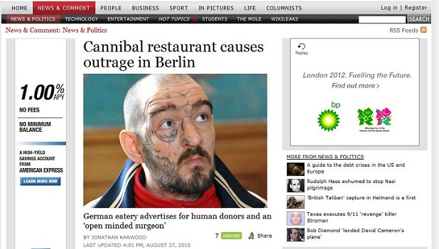 When the stunt was found to be a hoax, the restaurant changed their website to how it remains today, a declaration by Vebu (Germany's PETA equivalent) to condemn meat eating as similar to eating human flesh.