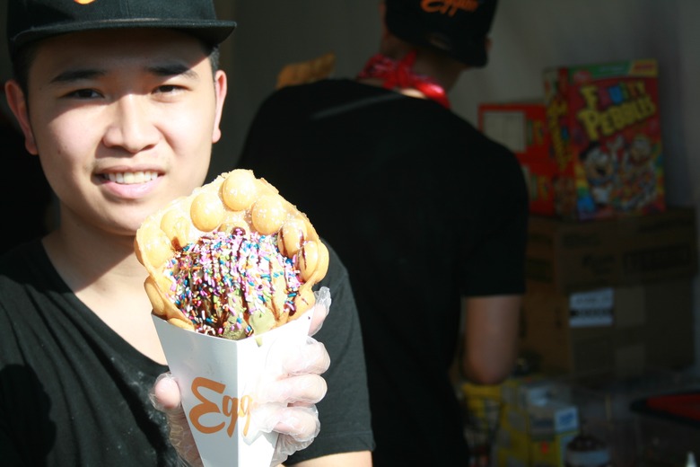 Eggloo's interesting take on the ice cream waffle cone — the Chinese egg waffle had a waffle taste but with the texture of edible bubble wrap — was immensely popular with the sweltering crowds, and continuously drew long lines.