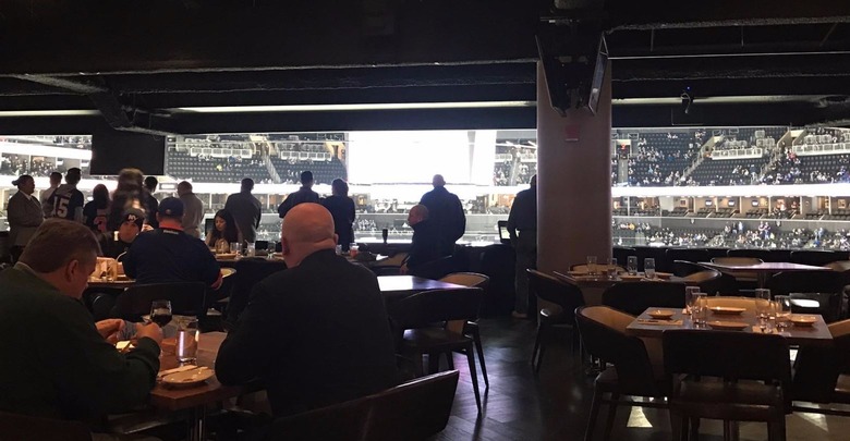 The space itself is large, and a wall is completely open to the arena floor below; if you snag a table on that side of the room you can easily watch the game while you're eating (hint hint, people with nosebleed seats). And half of the space is still the 40/40 Club, so there's a fully-stocked bar and plenty of seating on that side of the room as well. The Parm and 40/40 Club is still one of the Barclays Center's hidden secrets, but hopefully it won't be that way for long. Fans can reserve their table in advance on Reserve, and if you download the Barclays Center app you can actually order your meal to-go and bring it to your seats.