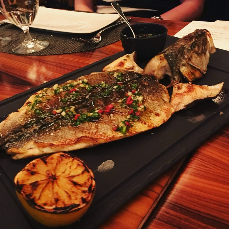 Starting with the Root section, enjoy hummus, baba ganoush, and tzatziki on herb garlic flatbread. For a more robust dish, the root vegetable cassoulet includes heirloom beans and basil pistou. From the Ranch section, try the turkey, ham, and cheese meatballs with rich Gruyère and jamón ibérico topped with a creamy peppercorn sauce. For carnivores, cut into a medium-rare four-times-seared 16-ounce bone-in ribeye seasoned with sea salt, soy, mirin, and uni. If you love the sea, visit the Surf section. The classic California crab roll with avocado and puffed rice is a great start. Follow the roll with a flavorful lion fish ceviche with coconut, ginger, ají amarillo, and a few tempura shiso leaves. If you have a bigger appetite, don't pass up the Veta la Palma sea bass with chimichurri.