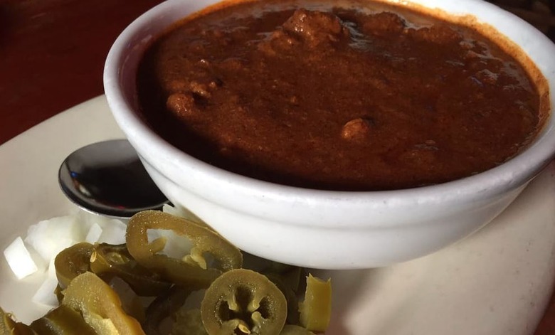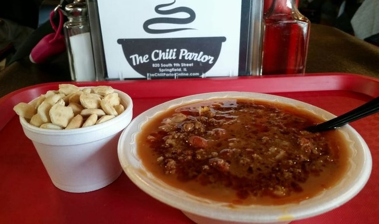 The town of Springfield, Illinois, is pretty famous for its chili — or "chilli," as it's called there. In fact, the town is absolutely loaded with chilli parlors, so much so that in 1993, the Illinois government dubbed it "The Chilli Capital of the World." The chilli here is made with beef suet (fat from around the kidneys), ground beef, tomato sauce, vegetables diced so fine that they vanish, pinto beans upon request, spices and just enough chile powder to make its presence known. It's a rich, beefy style made famous at Springfield institutions like Dew Chilli Parlor and The Chili Parlor, which both serve some of the best chili in America.