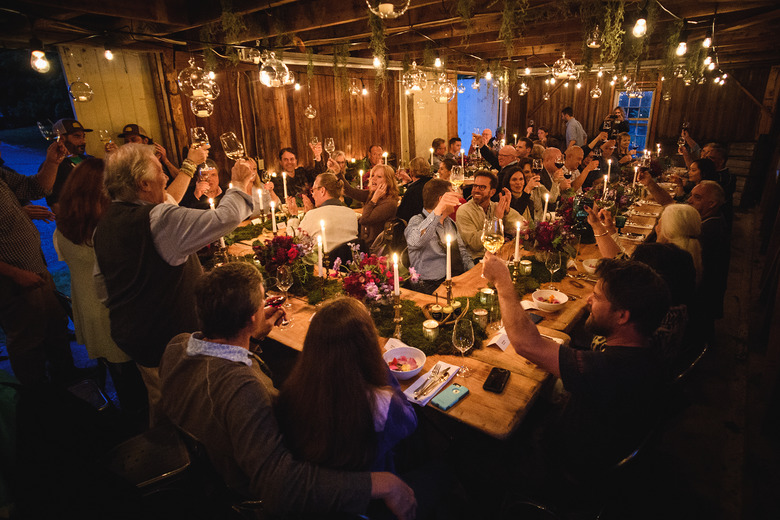 It was a rainy evening, but Redzepi and an all-star cast prepared a knockout meal, mostly outdoors on a sprawling, just-built fieldstone oven and grill complex designed by Wayman — "It's right out of The Flintstones," said Pépin, who was accompanied by his daughter, Claudine, and her husband, the chef and Johnson & Wales culinary professor Rollie Wesen — and served it family-style in a candlelit, flower-bedecked barn nearby. The participating chefs included, besides Pépin and Redzepi: Gavin Kaysen, longtime former chef de cuisine at Café Boulud in New York City and now chef-proprietor of Spoon and Stable in Minneapolis and Bellecour in nearby Wayzata; Jeremy Fox of Rustic Canyon and Esters Wine Shop & Bar in Santa Monica, California; Stuart Brioza and Nicole Krasinski of State Bird Provisions and The Progress in San Francisco; and four-time James Beard Award-winning chef and food activist Michel Nischan of Wholesome Wave. The dinner guests were pressed into service, helping the chefs prep under a long tent and then joining them at the cooking fires.