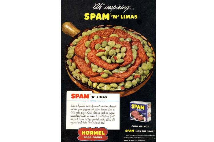 We're not sure what's so "super" about this salad loaf besides the fact that the recipe calls for a 1 ½-pound block of baloney with the center scooped out and mashed peas shoved inside. While this dish dates all the way back to the World War II era, it was a sad, sad harbinger of things to come.