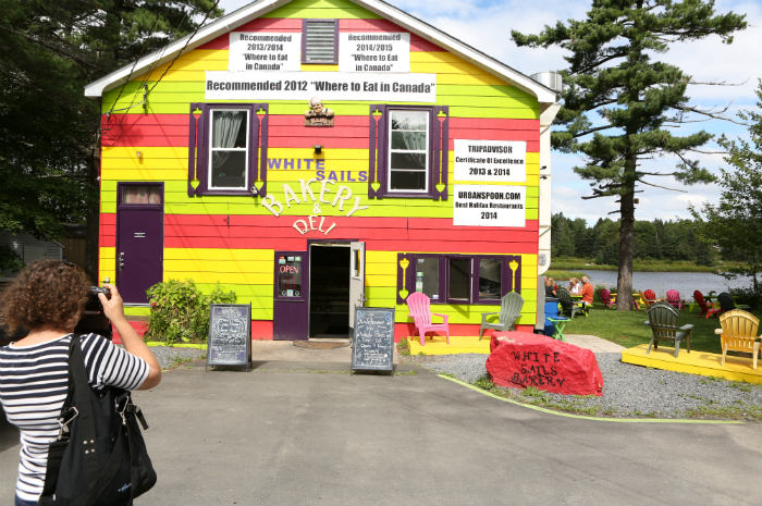 A bit further down the road is the hard-to-miss bright yellow and pink façade of the White Sails Bakery & Deli. The windows proudly displayed large signs with various accolades from TripAdvisor users and other media outlets