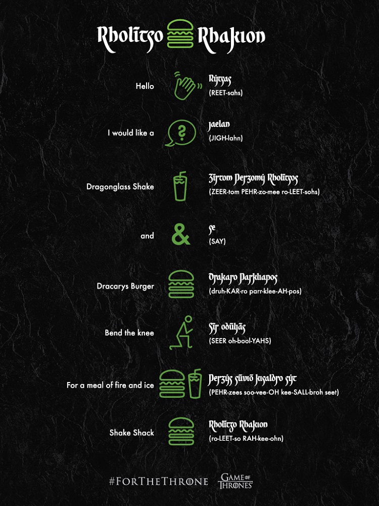 Shake Shack Has A Secret 'Game Of Thrones' Menu, But You Have To Order In Valyrian