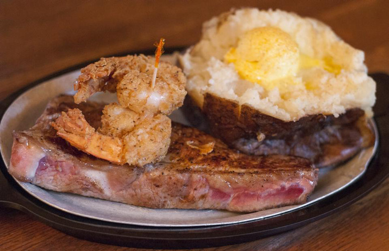 A New York institution since 1926 (even though the original location unceremoniously shuttered last year), today The Palm has 26 locations across the country. If you have a hankering for surf and turf in your city, check to see if there's a Palm, as it's a signature item of this old-school chain. All their beef is Prime and aged for a minimum of 35 days, and available steaks include filet, New York strip (from 14 to 24 ounces), and ribeye, and you can add a half broiled Nova Scotia lobster to any of them.