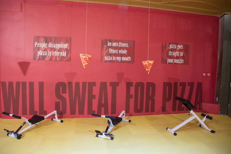 The Pizza Experience takes you through a secret entrance in a pizza shop and brings you to a slice-themed nightclub where you can spin and scratch pizza records or dance to the sure-to-be stuck in your head pizza anthem. Once you've danced all you can, go to a pizza fitness center that's plastered with funny motivational sayings such as, "I'm into fitness, fitness whole pizza in my mouth." If you've worked up an appetite lifting pizza pie dumbbells, head to the pizza dough room where you can roll out your muscles, roll out some dough, or even roll yourself on a person-size dough blob.