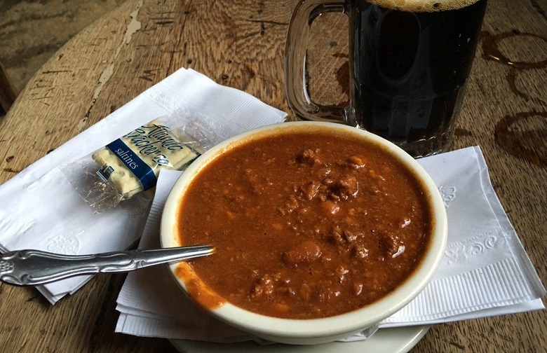 This legendary bar in New York's East Village may be best known for its stunning longevity (it opened in 1854 and has barely changed since) and its beer selection (light or dark — that's it), but its food options, displayed on a small chalkboard behind the bar, shouldn't be overlooked. Burgers are fresh and juicy, daily specials like corned beef and roast lamb are always on point, and its chili very well might be the city's best. Rich and comforting, it's made up of 90 percent ground beef, seven percent chick peas, and three percent kidney beans (give or take), all suspended in what's probably half beef fat and half chile-tomato sauce. With a few saltines crumbled into it, it's one of the heartiest bowls of food you're ever likely to encounter.