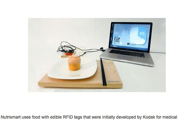 Now in its prototype stages, this plate, invented and deemed the "Nutrismart" by industrial designer Hannes Harms, keeps track of how much you eat via RFID technology that communicates with mobile devices. The plate reads the edible tag that's embedded on food, then communicates ingredients, portion size, and dieting information to your device. It also lights up when it detects allergens or other undesired ingredients, and can even create automated shopping lists.