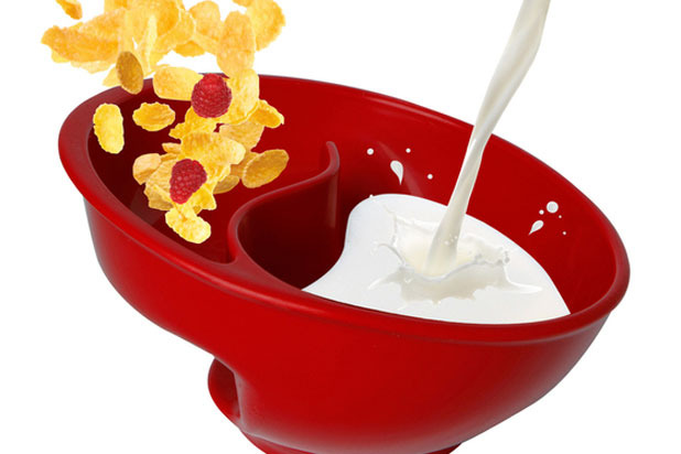 These bowls have two sections: an upper area for cereal, and a lower one for the milk. Scoop a spoonful of the cereal into the milk, and enjoy a bowl of cereal that will never get soggy. The possibilities are just about endless: it can also be used for chips and salsa, milk and cookies, or whatever you like! It even comes with a non-stick grip and matching spoon.