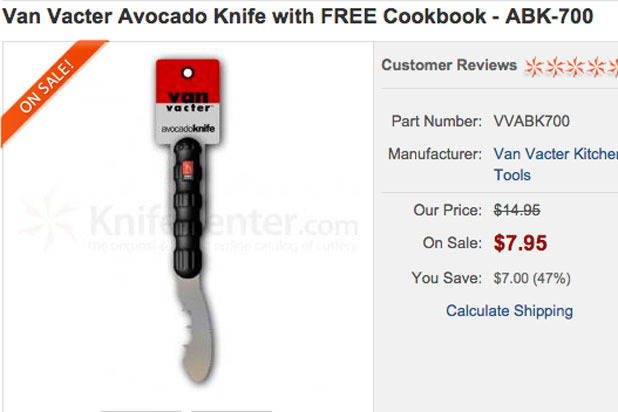 Alton Brown might not be a fan of "unitaskers," but for avocado lovers, this avocado knife is indispensable. Designed by surgical tool company Van Vacter, this knife opens, pits, and dices avocadoes, and even allows you to easily remove the peel.