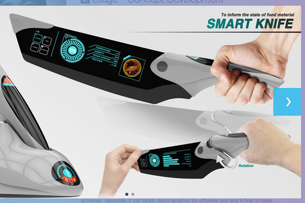Unfortunately, this is still in the concept development phase, but it's incredibly cool. Called the "Smart Knife," it can gauge the freshness and nutrition of food as it's cutting it, and all the data will show up on a screen on the knife itself. It can also emit negative ions, which can help to keep food fresh.