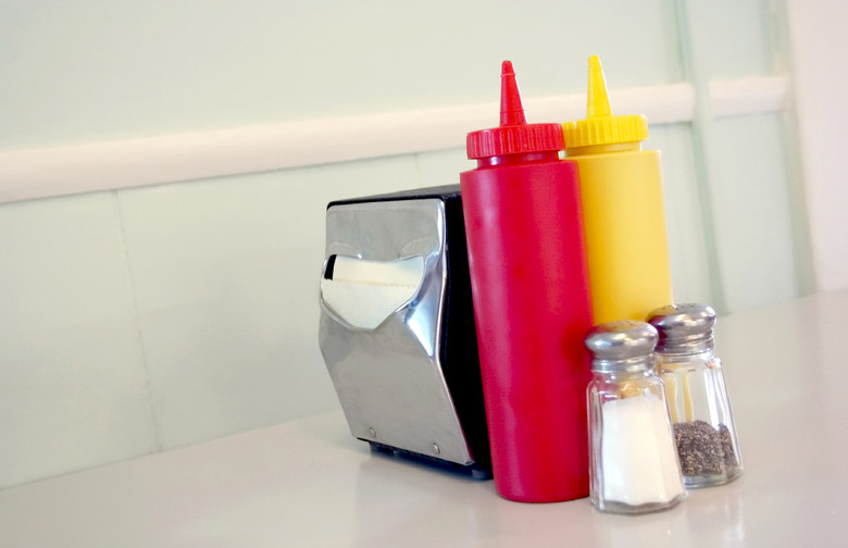 The items that remain on the tables throughout all of service can get quite a germy buildup over the course of the day. Ever notice that they're sometimes sticky? Yeah, you don't want to be touching these very much.