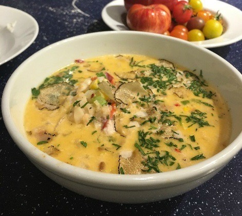 "The only difference between a live cooking show and a cooking show on TV is that you can actually smell what's going on in the kitchen. Smellivision hasn't been created yet," he exclaimed in the midst of the preparation process. I had the great pleasure of sitting down with Todd after the show to learn more about him and his expertise.