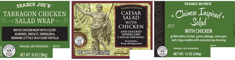 Trader Joe's has issued a statement on its website, which claims that only stores in Iowa, Illinois, Indiana, Kansas, Kentucky, Michigan, Minnesota, Missouri, Nebraska, Ohio, and Wisconsin are affected. The items in question at those outposts include Trader Joe's Tarragon Chicken Salad Wrap, Trader Giotto's Caesar Salad with Chicken, and Trader Ming's Chinese Inspired Salad with Chicken. No illnesses have been reported to date.