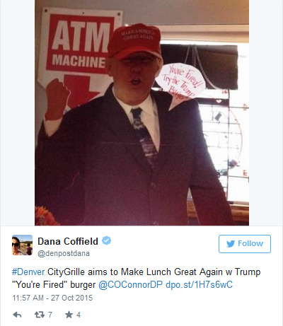Diner Charley Takaya told The Denver Post via email that the burger was tasty "but the funny part is the owners let me take a picture with (the) Donald Trump cutout, which was funny as it is."