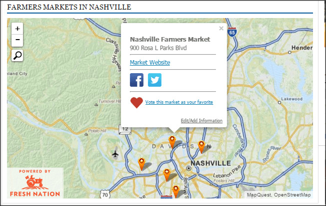 Powered with help from Fresh Nation, the Farmers Market Finder does just that: finds the closest farmers markets to you. Each farmers market is marked by an orange carrot on the map. Vote for your favorite farmers market by clicking on the carrot and then the heart.