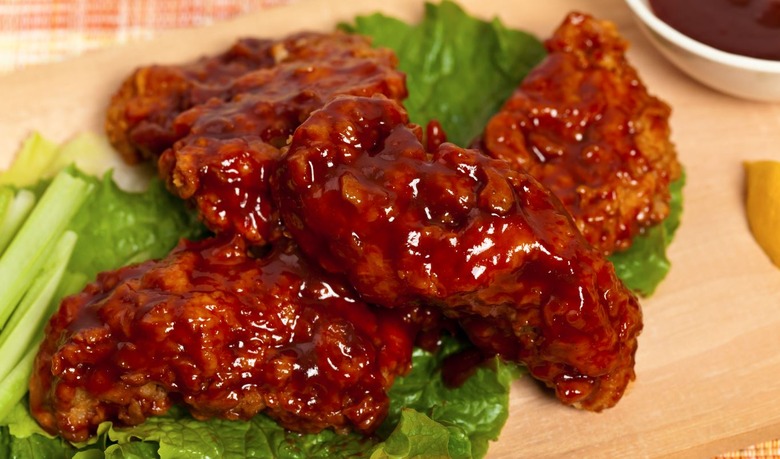 A New York Times article from 2009 dubbed the boneless wing "an oxymoron dipped in hot sauce... not wings at all, but slices of breast meat deep-fried like wings and served with the same sauces — a bit like a spicy Chicken McNugget." It attributes their emergence to a couple factors, chiefly the rising price of wings and the falling price of breasts, and diners' aversion to getting messy by eating traditional wings. You only really see boneless wings on the menu alongside traditional wings, primarily at chains and bars, so it would make sense to keep the terminology similar. But calling what's basically a sauced mini-chicken tender a wing is an affront to the wing, and it's time we came up with a better name for it.