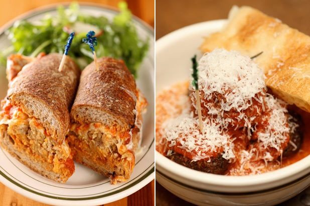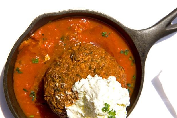 Man, would we love to see a New York Meatball Battle Royale between the Parm and Meatball Shop guys, The Franks, Andrew Carmellini, and The Little Owl's chef Joey Campanaro. Campanaro definitely gives the other guys a run for their money, using a recipe inspired by his grandmother's. They're about as traditional as can be, made with a combination of beef, pork, veal, pecorino Romano, panko bread crumbs, and parsley, pan-fried and simmered in a fennel- and garlic-speckled tomato sauce. The golf ball-sized balls are served in a homemade roasted garlic bun topped with sauce, basil, and more pecorino. If you fall in love with these, you won't be the first; they sell more than 1,000 per week! Meatball heaven.