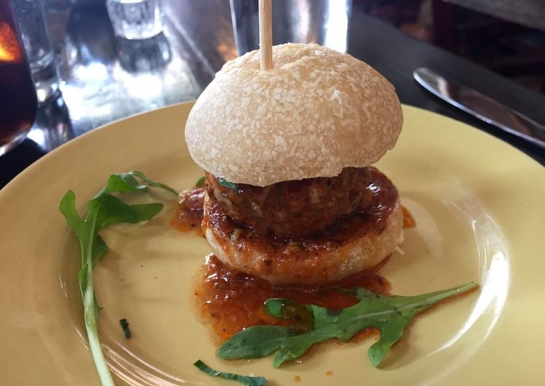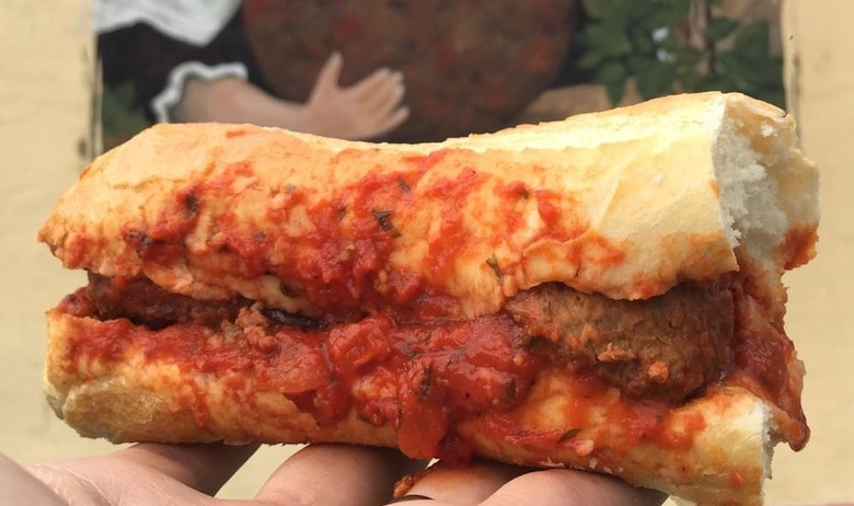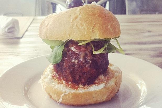 The meatballs served at New York's popular Parm, helmed by the on-fire duo of Rich Torrisi and Mario Carbone, aren't exactly balls: they're flat, in order to better fit inside a sandwich. They're also still a little pink in the middle, but the comparisons to a burger stop there. A combination of beef, veal, and sweet Italian sausage is mixed with fried onions, celery, carrots, stale bread, milk, grated cheese, and eggs. When topped with melted mozzarella and tomato sauce and tucked into a soft loaf from Parisi Bakery, it's one of one of the greatest sandwiches you'll ever eat.