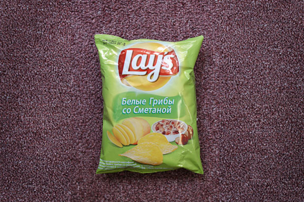 The flavor of this chip, which is available only in Russia, Ukraine, and Kazakhstan, doesn't apparently taste much like mushroom (it's apparent just sort of sweet and creamy-tasting), and in fact, it's not that tasty at all.