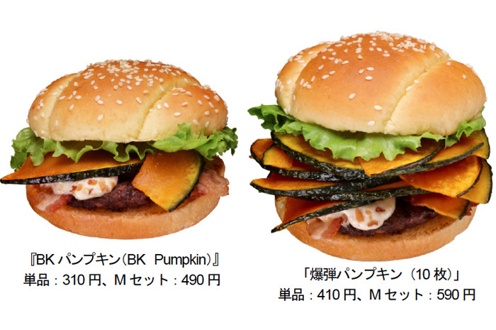 For Thanksgiving 2012, Burger King Japan released a burger with a patty topped with sliced kabocha squash (also called Japanese pumpkin), bacon, lettuce, and a mayo-based sauce with sesame seeds, peanuts, cashews, almonds, and hazelnuts.