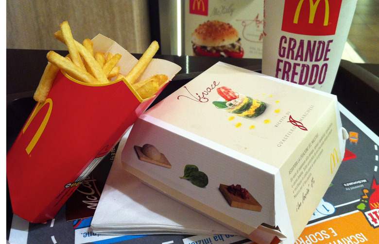 In 2011, McDonald's in Europe brought some of Europe's most renowned chefs on board to create specialty burgers for the chain. One result was the surf and turf burger above, and in Italy, chef Gualtiero Marchesi created the Adagio, which was topped with eggplant "mousse," tomato, and ricotta salata cheese, presented on a bun with chopped toasted almonds.