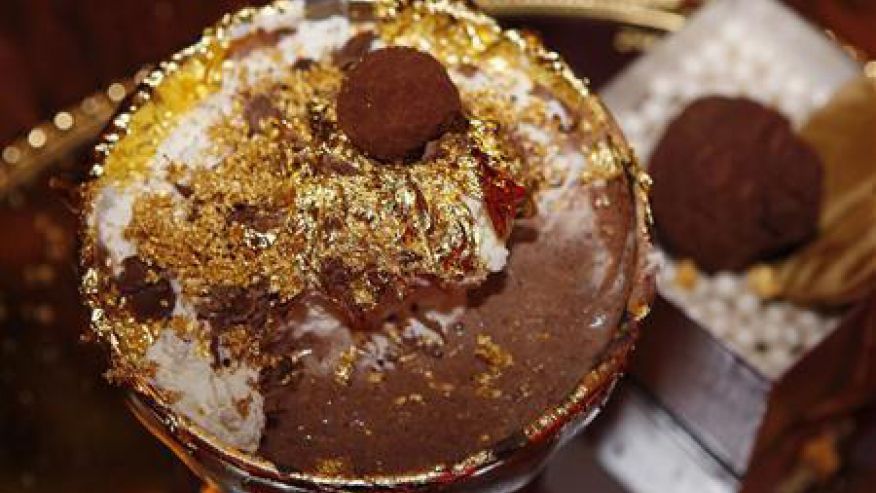 The whole treat is served in a goblet lined with edible gold, and an 18-karat gold bracelet plus 1 carat of white diamonds at the base of the goblet.