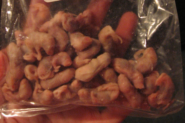 In some parts of Asia, newborn mice and rats sometimes called "pinkies" are eaten whole, either crispy fried or grilled, such as the way author Jerry Hopkins samples them in his 2004 book Extreme Cuisine (Periplus Editions). Hopkins had them like spring rolls: with a traditional Vietnamese dipping sauce of ginger, garlic, chilies, cilantro, fish sauce, and rice vinegar.