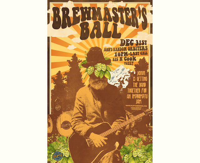 Plenty to do this new years eve but what could be better than a Brewmaster's Ball with John Harris of Ecliptic Brewing? The poster above only hints at what's in store but word is John will be getting the beer industry all-star bluegrass band featuring himself on washboard and Cascade's Ron Gansberg among others together for this special show. If you havent seen one of John's rare performances, or been to the new Ecliptic Brewing yet, he rocks it.